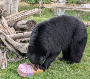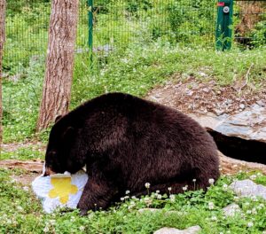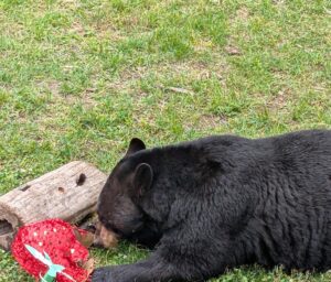 Some of the ground fruits are producing an excellent crop this year. The woodland strawberries, red raspberries, bunch berry, serviceberry, sarsaparilla and red-osier dogwood all poised to have bountiful yields. So far it looks to be a good food year for our ambassador bears and the wild bears. As you look around the pond you might notice how many serviceberry (also called juneberry) trees there are. These trees are loaded with the sweet tasting berries that our bears (and staff) love. Just outside the gates there are pin cherry trees and chokecherry trees again loaded with fruit. The interns will pick them as soon as the fruit is ripe and give them to the bears. If it is given as a branch it is called browse. Dr. Rogers’ wife Donna and her grandchildren often cut small branches trimmed from her trees to give them to the bears. The interns in early summer often cut willow and aspen browse and give the fresh young leaves to the bears.