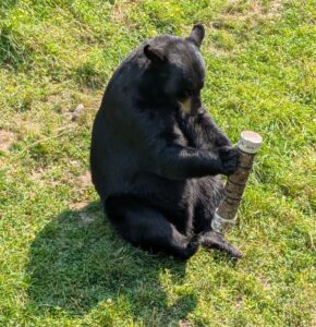 Many times a season we are posed with the question, “Do you give your bears honey?” The quick answer is no, but it leads into a cartoon story that almost everyone knows and it goes like this: “How many of you have heard of Winnie the Pooh?” Everyone raises their hands. “And what is his favorite food?” The answer they give is “Honey!” We then continue with, “He has been lying to you your whole life. Although he may love honey, black bears do not typically eat honey.” (Insects and animal matter are less than 10% of the annual black bear diet around Ely and across most of North America ) they eat the larvae or pupae and eggs which are rich in protein and fat.