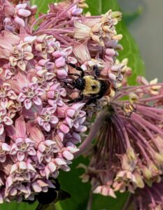 Another bumble bee common to this area is the rusty patched bumble bee (Bombus affinis) which is the state bee of Minnesota. Although they do not produce honey, they are pollinators.